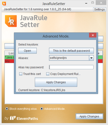 Si no se tiene ni idea de lo que se está haciendo, lo más sencillo es crear una regla para un dominio que se quiera meter en la lista blanca y pulsar en "Apply changes". El programa creará todos los valores por defecto y los aplicará. Los usuarios más avanzados podrían utilizar su keystore habitual para firmar el fichero con las Deployment Rules y eludir ciertas partes del proceso que prefieran controlar personalmente. En "Avanced Mode"" se encuentra toda la información al respecto.