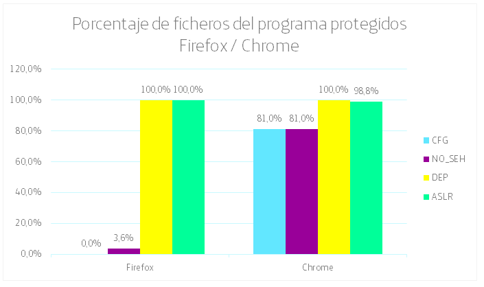 Con respecto a los navegadores (y programas de terceros en general) parece que Chrome ya ha adoptado en buena medida las nuevas mitigaciones anti-exploit como CFG y tiene al 100% asimiladas el resto. El único fichero de Chrome que no tiene activado ASLR es el propio instalador. Firefox, olvida CFG y NO_SEH.