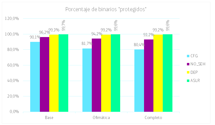 En el informe se han comprobado cuatro medidas de seguridad básicas: DEP, ASLR, SEH y CFG. Son cuatro métodos anti-exploit que, de encontrarse activos en un fichero ejecutable (exe o dll) dificultan a un potencial atacante la capacidad de aprovechar vulnerabilidades de ejecución de código.