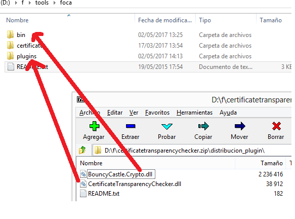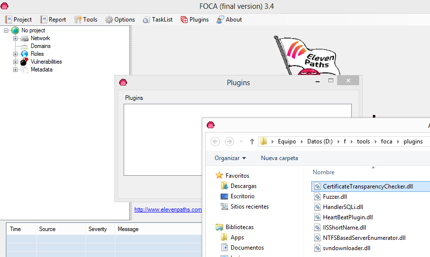 La instalación es muy sencilla. Simplemente se almacena la DLL en el directorio de plugins, y se carga desde la interfaz. Es importante recordar que la librería BouncyCastle.Crypto.dll debe copiarse al mismo directorio que el ejecutable de FOCA.
