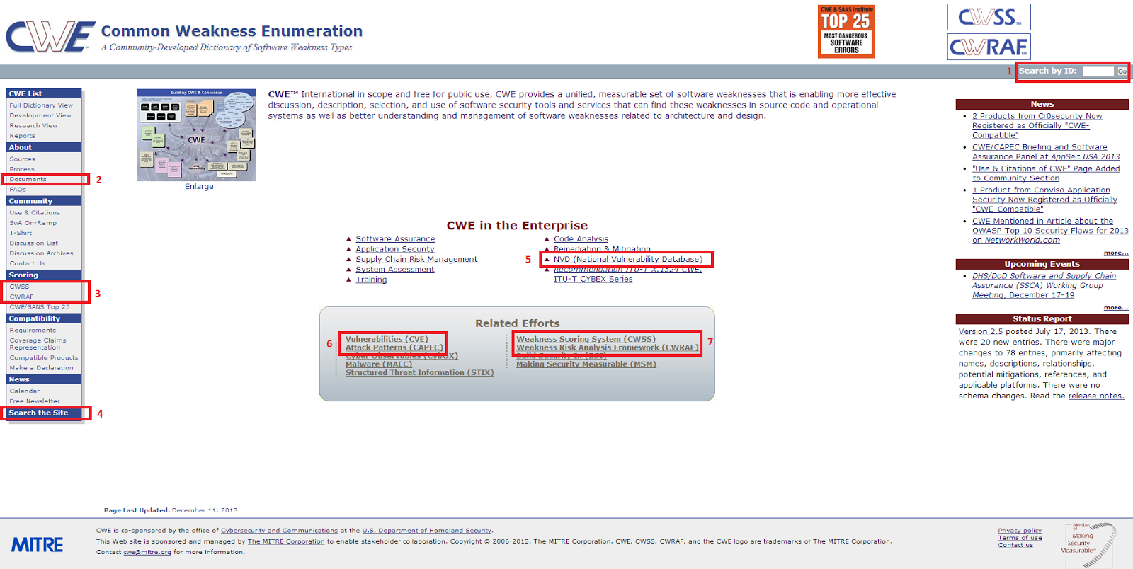 - En el enlace "Search the Site2 pueden realizarse búsquedas específicas de debilidades de software utilizando palabras clave que puede estar contenidas en el nombre o la descripción de las debilidades en caso de no conocer su CWE-ID.