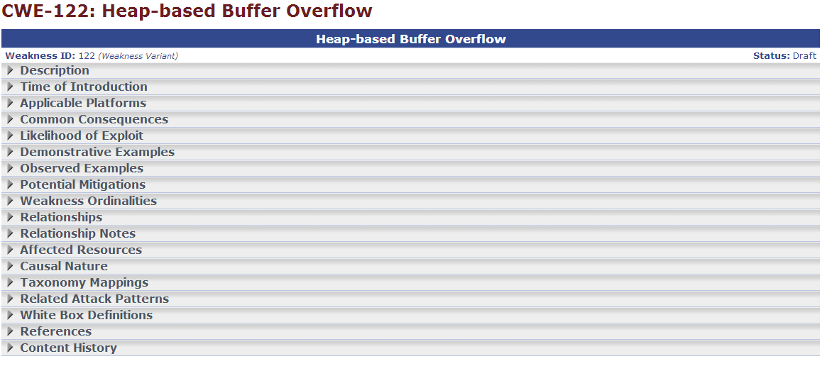 - CWE-120: Buffer Copy without Checking Size of Input (Classic Buffer Overflow)