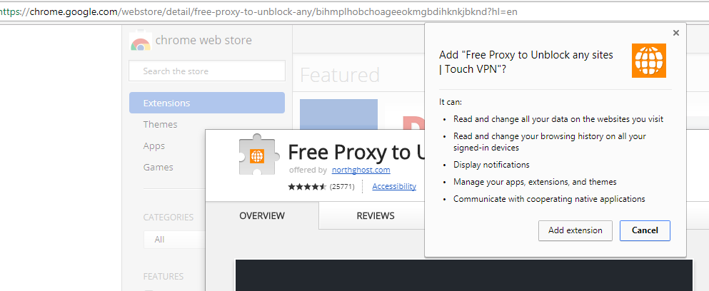 La inmensa mayoría pide menos de 15 permisos, aunque podemos observar excepciones como Free Proxy to Unblock Any Sites que pueden llegar a necesitar hasta 42 permisos. El problema es que si bien queda claro en el fichero en sí, no queda tan claro al usuario que lo está instalando.