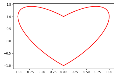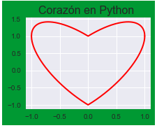 Después de estas sencillas nociones sobre matplotlib, no nos podemos resistir a probar la visualización de otras curvas cuya representación gráfica se asemeja a un corazón.