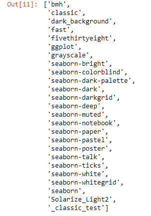 Las versiones más recientes de matplotlib permiten aplicar estilos que dan un aspecto más atractivo a las gráficas. Podemos ver los estilos disponibles con esta instrucción: