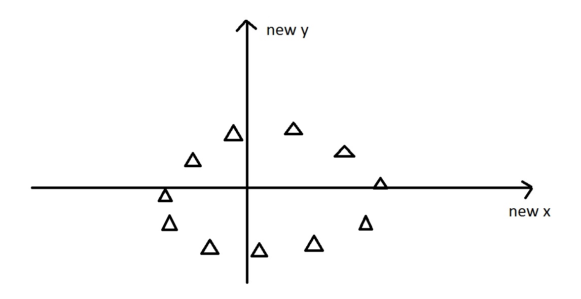 Si los triángulos representan datos, la dirección que representa la mayor varianza es la línea sobre la cual la dispersión de los datos es mayor. Si tomamos una línea vertical y proyectamos los datos sobre ella, vemos que los datos no están tan "separados" como cuando hacemos la misma operación sobre una línea horizontal. Por tanto, en este ejemplo concreto, el componente principal es la línea horizontal, que corresponde a una mayor varianza.