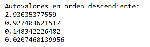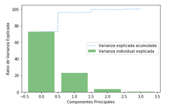 Una vez ordenados los autovalores, que recordamos son una medida de la varianza de los datos, la cuestión es decidir, cuál es el menor número de autovectores o componentes principales, con el que podemos expresar “la esencia principal” de la información contenida en ese dataset. Para ello, usaremos un métrica que se conoce como “varianza explicada”, que muestra cuánta varianza se puede atribuir a cada una de estas componentes principales.