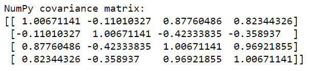 Para ello, usaremos la función Covariance Matrix de la librería Numpy.