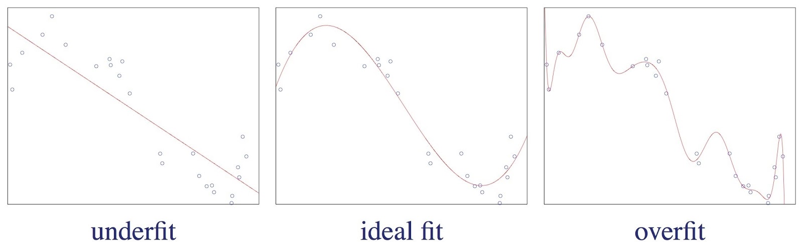 - Error de testeo: el error sobre el conjunto de validación es alto tanto en el escenario de underfitting como en el de overfitting. Nos interesa monitorizar este error para quedarnos justo en el punto de entrenamiento en el que este es menor.