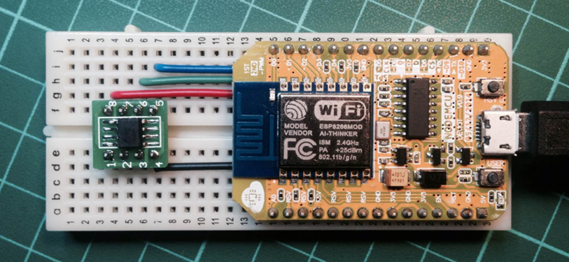 Podría utilizarse cualquier módulo ESP8266, en este caso se ha empleado un NodeMCU v0.9, cargando un sketch generado a partir del core ESP8266 para Arduino.Como hardware criptográfico se ha elegido un Cryto-Authenticator Atmel SHA204A conectado externamente al módulo NodeMCU.