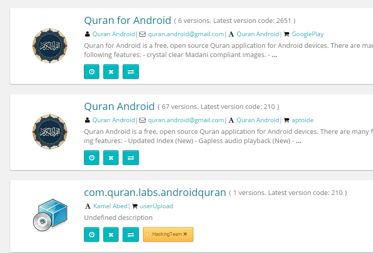 We insist: these apps shown in their markets are innocuous, it's just that HackingTeam uses them as trojans (in the more classic meaning of the word) to encourage or disguise the malware installation.