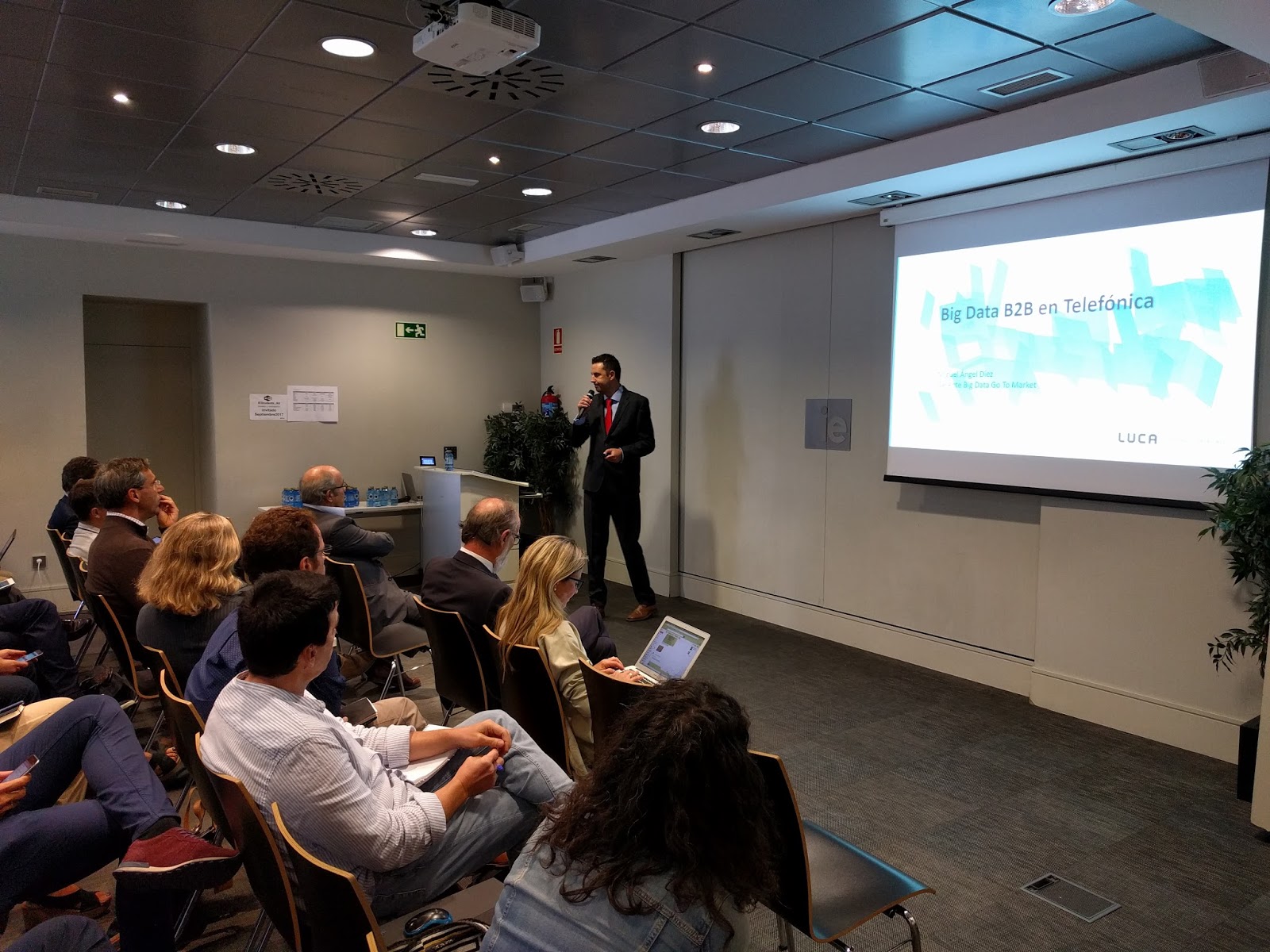 Miguel Ángel Díez, gerente Big Data Go-to-market de LUCA, compartió con los asistentes las experiencias y conocimiento de Big Data de Telefónica, haciendo especial énfasis en la transformación de la compañía hacia una dirección Data-Driven. Se mencionaron los primeros proyectos de Big Data que comenzaron en Telefónica cinco años atrás, tales como el puerto de Barcelona o las iniciativas de Big Data for Social Good, como fue en el caso del Terremoto de México. Así, Miguel Ángel compartió con los asistentes cómo se ha construido en Telefónica el ecosistema de transformación hacia una compañía que toma las decisiones basadas en datos.