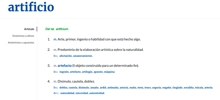 Observemos que no está 'artificial' ni 'caluroso'.