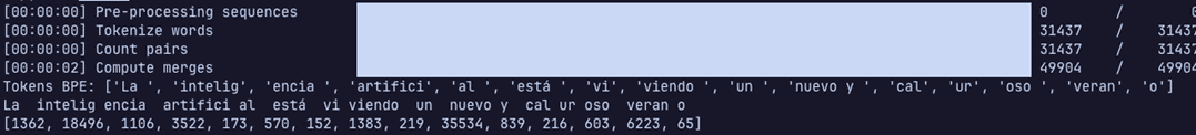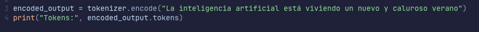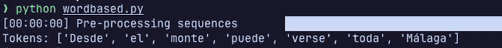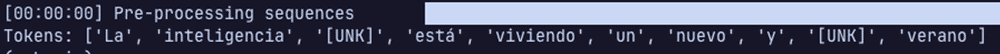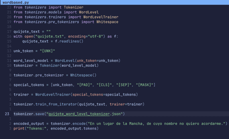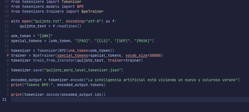 Esto ya es bastante simple. Además, en la misma secuencia hemos acoplado su entrenamiento, directamente pasamos a la fase de tokenización.