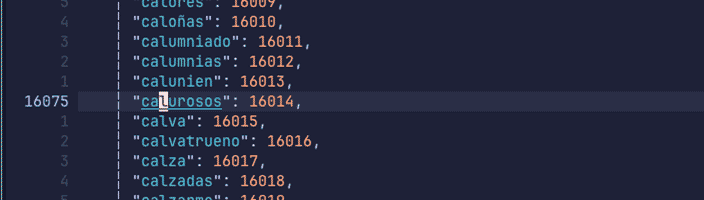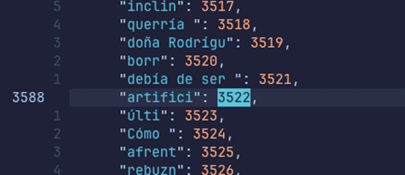 Lo que hace el entrenador es crear un vocabulario para que el tokenizador lo use posteriormente. Si echamos un vistazo al vocabulario, veremos que es extremadamente sencillo, al final crea un diccionario clave-valor, donde a cada palabra vista se le asigna un identificador numérico.