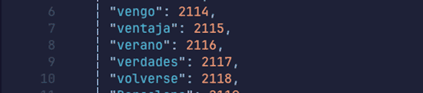 Si buscamos a la inversa, por ejemplo, el token con el identificador 2116, veremos dónde se encuentra en nuestro vocabulario: