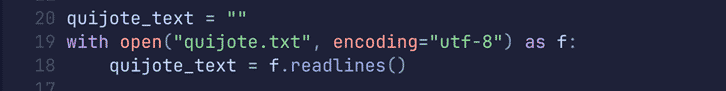 Cargamos el texto del Quijote línea por línea: