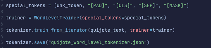 Eso lo podemos hacer instanciando un entrenador específico para WordLevel: