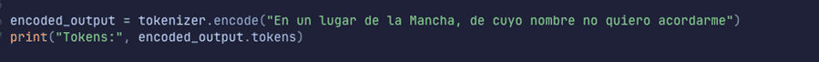 Si volvemos a nuestro Quijote, vamos a emplear BPE para tokenizar de nuevo nuestra frase actual y ver que ocurre: