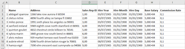 Vamos a trabajar sobre un informe Excel sobre los comerciales de una empresa. Tiene este aspecto: