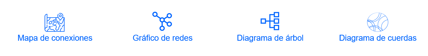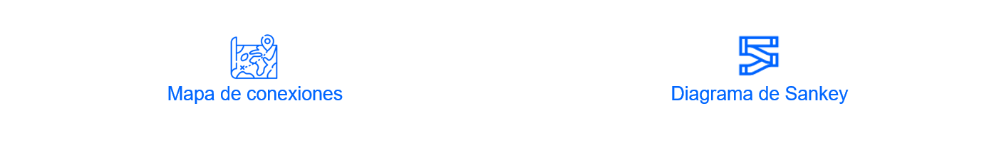 Los métodos de visualización que permiten representar el movimiento de los datos o los flujos de estos son el mapa de conexiones o el diagrama de Sankey.