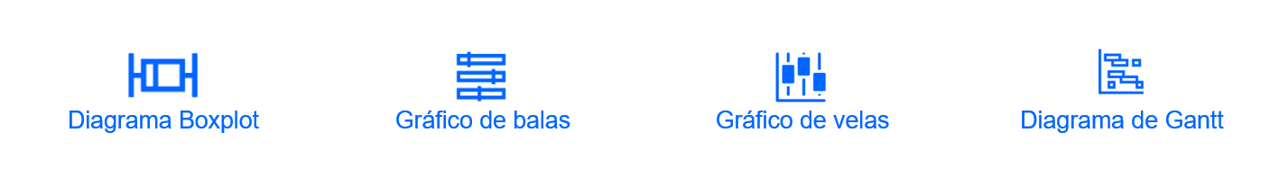 Para esta funcionalidad los gráficos de diagrama de cajas y bigotes o boxplot, gráfico de balas, gráfico de velas, el diagrama de Gantt entre otros serán una muy buena opción a implementar.