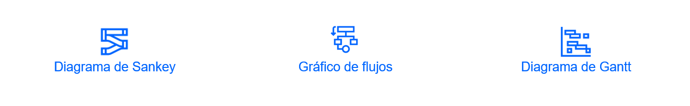 Los gráficos más adecuados para mostrar este tipo de funcionalidad son el diagrama de Sankey o un gráfico de flujos, si lo que se desea es hacer foco en la explicación de procesos o métodos, el gráfico más recomendable sería el diagrama de Gantt.
