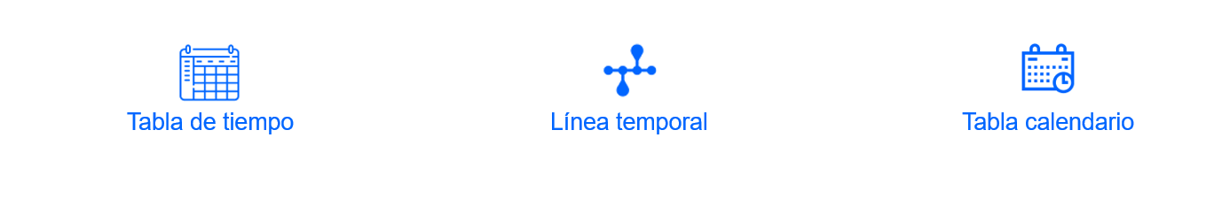 En este apartado cuya función principal es observar cómo oscilan los datos durante el tiempo, también destaca por unos gráficos que podrían ser usados para representar la secuencia de eventos a lo largo del tiempo. Gráficos como una tabla de tiempo, una línea temporal o una tabla calendario pueden ayudar a representar este tipo de información.