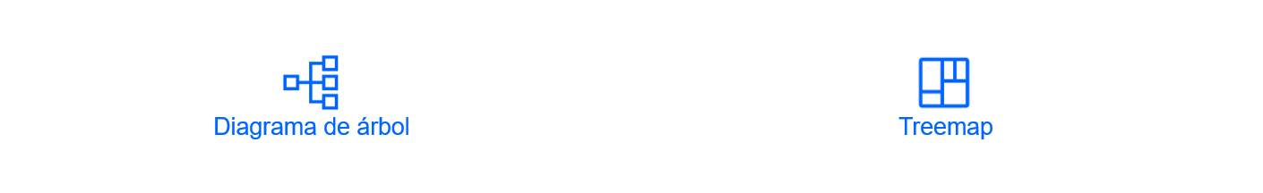 Los gráficos más usados para mostrar la jerarquía entre un conjunto de variables son el gráfico de diagrama de árbol y el treemap.