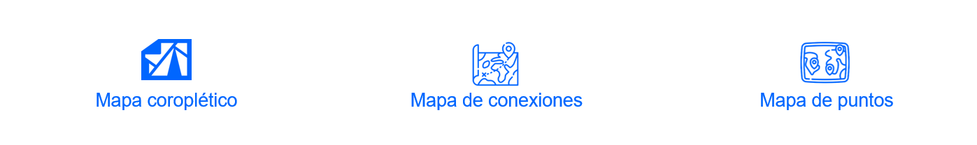 Los siguientes son métodos adecuados para la representación de las regiones geográficas: mapa coroplético, mapa de conexiones y mapa de puntos.