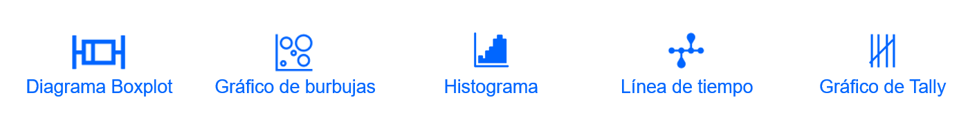 Los gráficos que ayudan a plasmar esa idea son diagrama boxplot o de cajas y bigotes, gráfico de burbujas, histograma, línea de tiempo, o el gráfico de Tally.