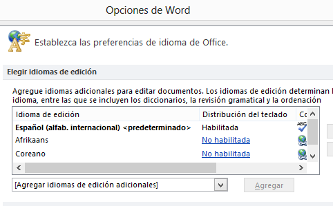 - Inglés: Curiosamente, si estableces coreano como tu idioma por defecto, siempre irá acompañado del inglés en los documentos Word. Parece una funcionalidad de Word.