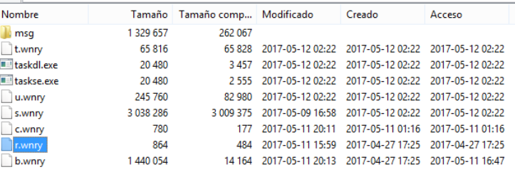 - 2017-05-11 15:59: Crea r.wnry que contiene instrucciones de borrado.