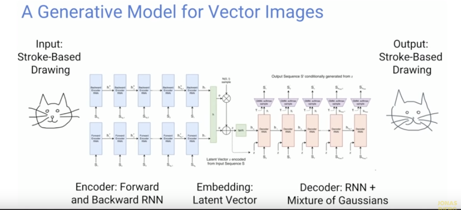 From an input, the system generates gaussians, a range of possibilities of where the next pen stroke should go. As more images are inputted, the system gets smarter.