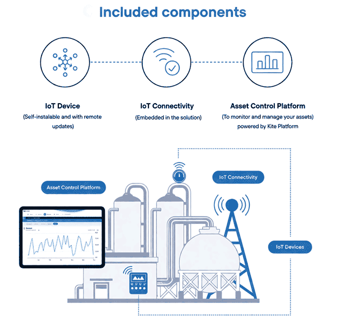 - Complete IoT solution including easy to install devices, connectivity and platform.