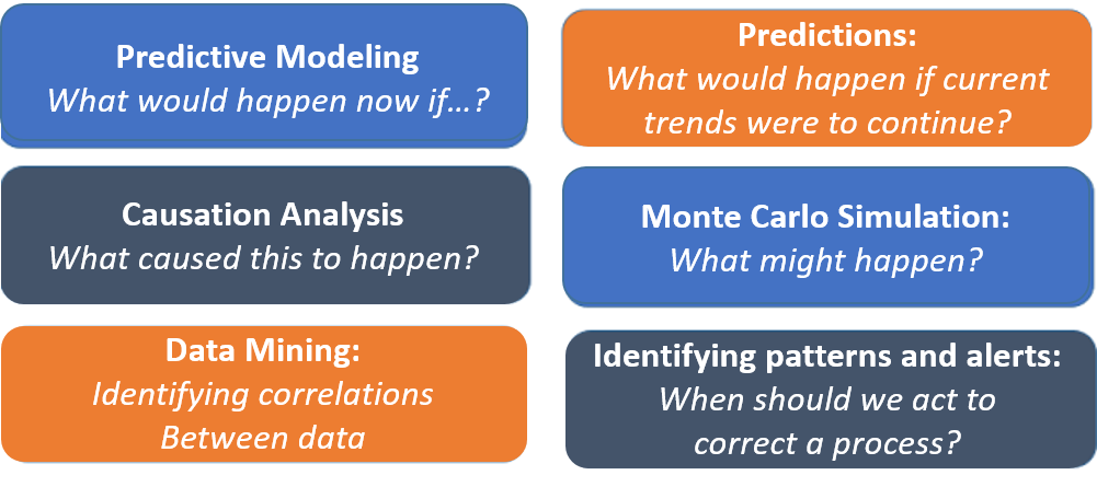 - Examples: Prescriptive analytics is useful when making decisions relating to the exploration and production of petrol and natural gas. It captures a large quantity of data, can create models and images about the Earth’s structure and describe different characteristics of the process (machine performance, oil flow, temperature, pressure etc). This tools can be used to decide where and when to drill and therefore build wells in a way that minimizes costs and reduces the environmental impact.