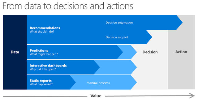 - Based on: This type of analytics ingests hybrid data; structures (numbers, categories) and unstructured (videos, images, sounds and text). This data may come from an organization’s internal sources, or external ones such as social networks. To the data, it applies statistical mathematical models, machine learning and natural language processing. It also applies rules, norms, best practices and business regulations. These models can continue to collect data in order to continue making predictions and prescriptions. In this way, the predictions become increasingly precise and can suggest better decisions to the business
