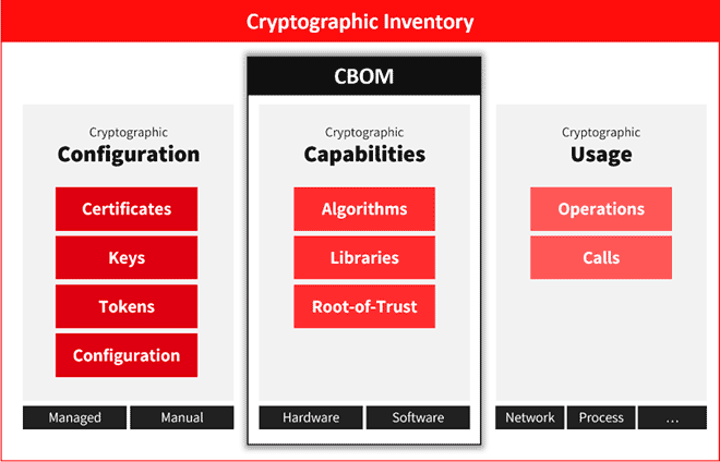 —Limited visibility; not designed for cryptographic transparency; risk of unmanaged or unknown assets. - Embedded cryptography in applications: cryptographic elements hidden within compiled or third-party applications.