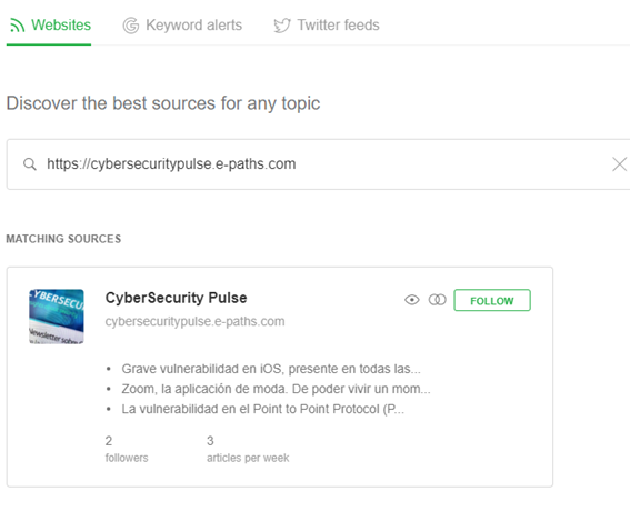 For those who still use RSS in a "pure" way, you can access CyberSecurity Pulse through the following link: https://cybersecuritypulse.e-paths.com/en/feed