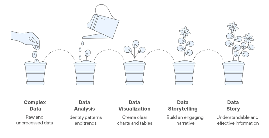 It’s not just about showing numbers or charts, but about telling a story that captures the audience’s attention and helps make sense of complex information. This is what we call data storytelling: the art of telling a story with data.