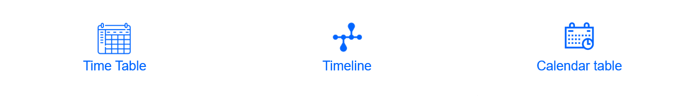 This section, which primarily serves to observe how data oscillates over time, also features graphs that could be used to represent the sequence of events over time. Graphs such as a timetable, a timeline or a calendar table can help to represent this type of information.