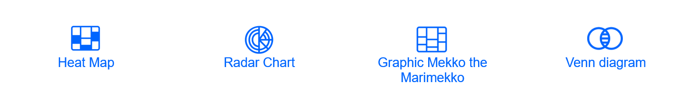 Methods that allow us to show the main differences or similarities between values. We can differentiate all the possibilities depending on the need to incorporate axis or not the graphs.