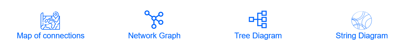 When it comes to showing only connections between different variables, the most suitable graphs are the connection map, network graph, tree diagram and the chord diagram.