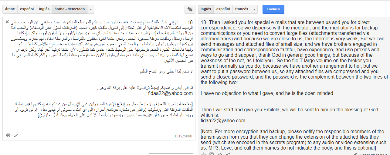 An interesting part are the passwords, but the ones used to communicate between terrorists. Thanks to Metashield Protector, we found this email fidaa22@yahoo.com inserted in a Word document. But the context of the file was much more interesting than the email itself.