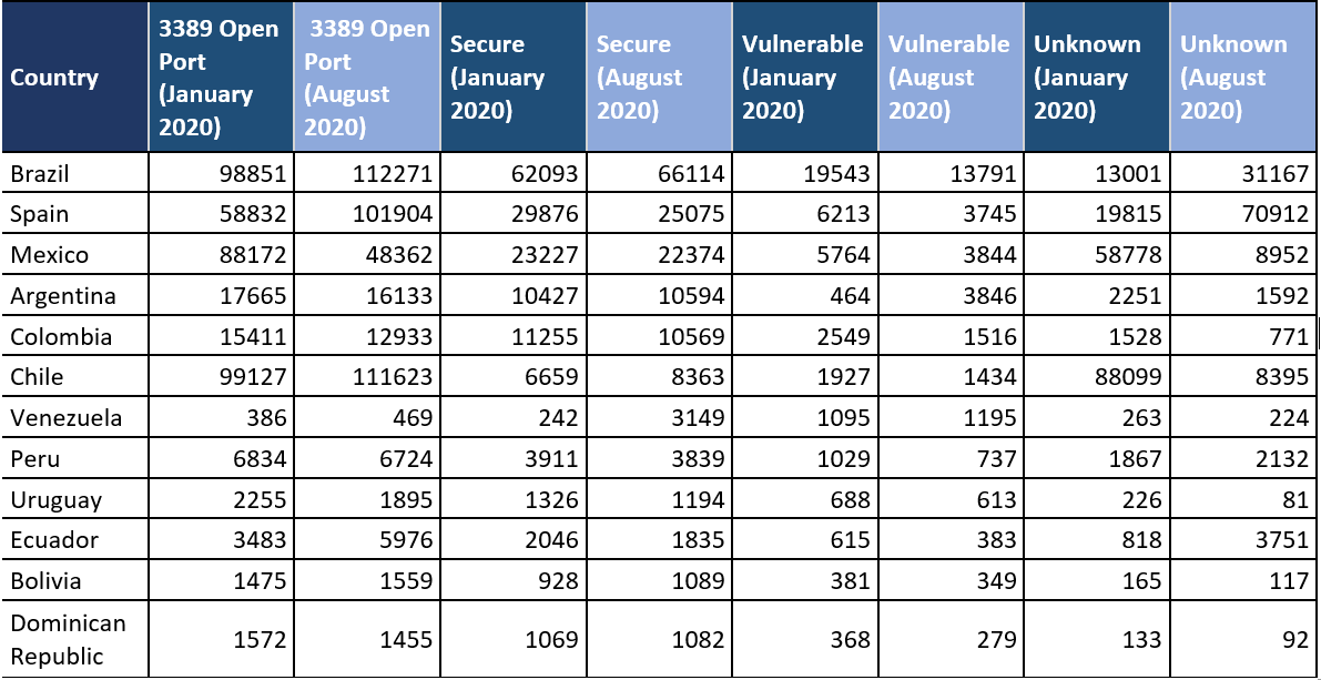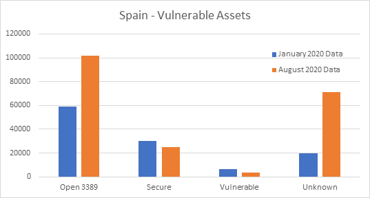- We establish a comparison between January 2020 and August 2020, to compare the number of assets with the open port and to draw conclusions regarding the level of exposure.