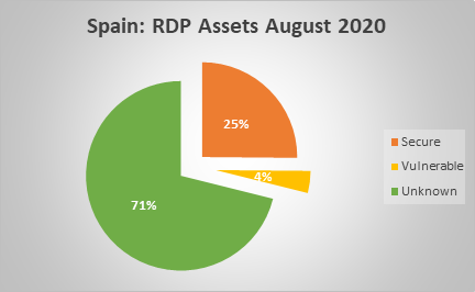 - The tools described above have been used to analyse whether the asset exposed under the 3389 open port is vulnerable. It should be noted that the analysis is not decisive and there are several undiagnosable assets, which are listed as "unknown".