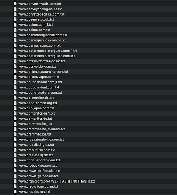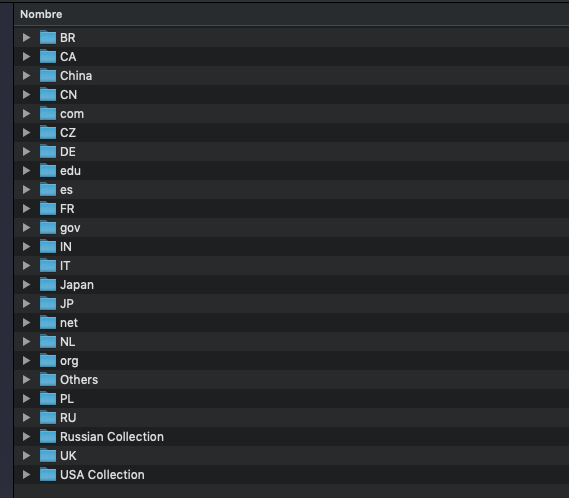 On some files, the organization consists in TLD domains attributed to groups and countries. This would allow to target some kind of attacks (phishing and scam, in general) towards a certain type of organization or group with the same idiosyncrasy.