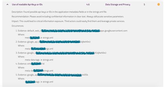 We would like to highlight several weaknesses that we found in easily readable structures between XML, API Keys or configuration files, reflecting bad practice in terms of insecure local storage.