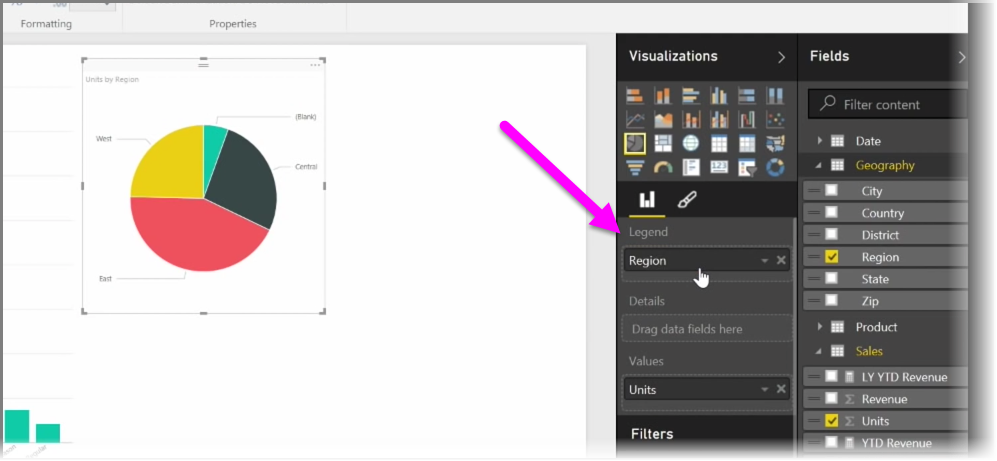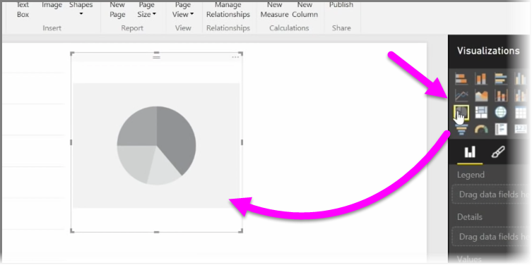 We can also firstly select the type of visualization that we want and then drag data fields to bookmark the position on the canvas.
