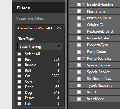Figure 20: In our example, through added the "AnimalGroupParent" field automatically allows us to filter for each type of animal that appears in the group.